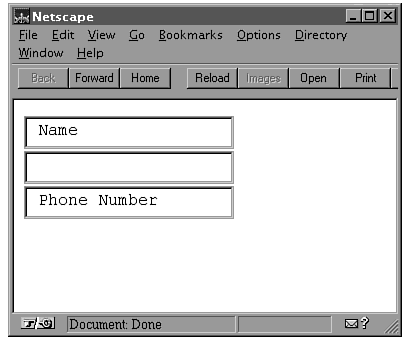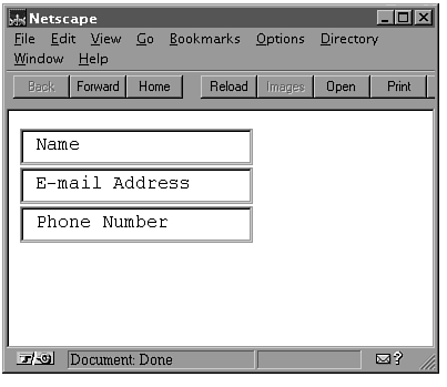 In the above INPUT tag, a button named name is created. The VALUE attribute contains the text that the Navigator browser displays in the button.
